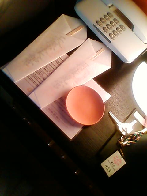写真は、宿『斎王の宮』にて。枕元に、頂いてきたばかりのお札を並べて早速の御利益を有り難く感じながら。