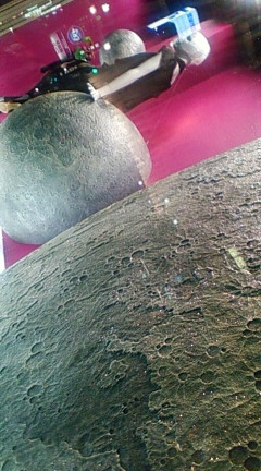 店名は忘れましたが、近くには歌舞伎座。そんな東銀座の夜。しばらく歩いていると、ピンク色の宇宙に浮かぶ月を見つけました。