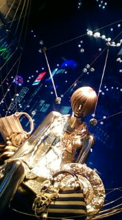 写真はWAKOのディスプレイ。星座を背景に、銀座風なミューズが夜景に溶け込んでいるのがなんとも面白がった。